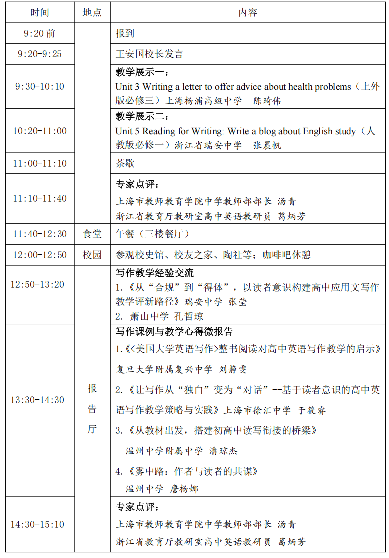 关于举行温州市潘云梅高中英语“名师送教”工作室第12次活动的通知