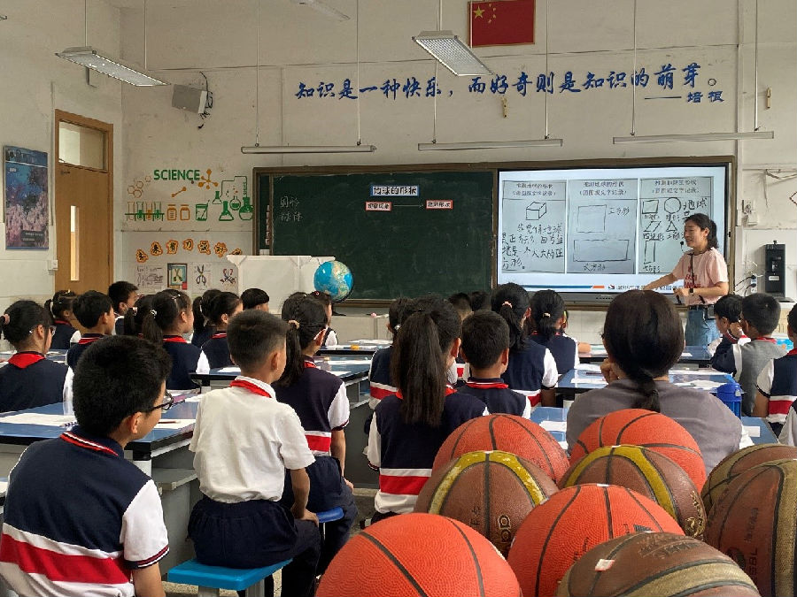 首先未来小学教育集团金洁茹老师执教《地球的形状》一课,金老师将几何与科学研究交融在一起,抓住人类如何研究地球形状的主线,让孩子对不同时期人们观察到的现象形成理性推测与分析,分别抓住“天圆地方”“帆船现象”“月食现象”“麦哲伦航线”四个阶段,金老师尊重儿童的感性需求,分别安排在课前调查、验证实验、趣味演示和微课观摩,最后用小先生讲故事的形式进行领学,让学生对每个阶段的现象和推测有了深入的理解。