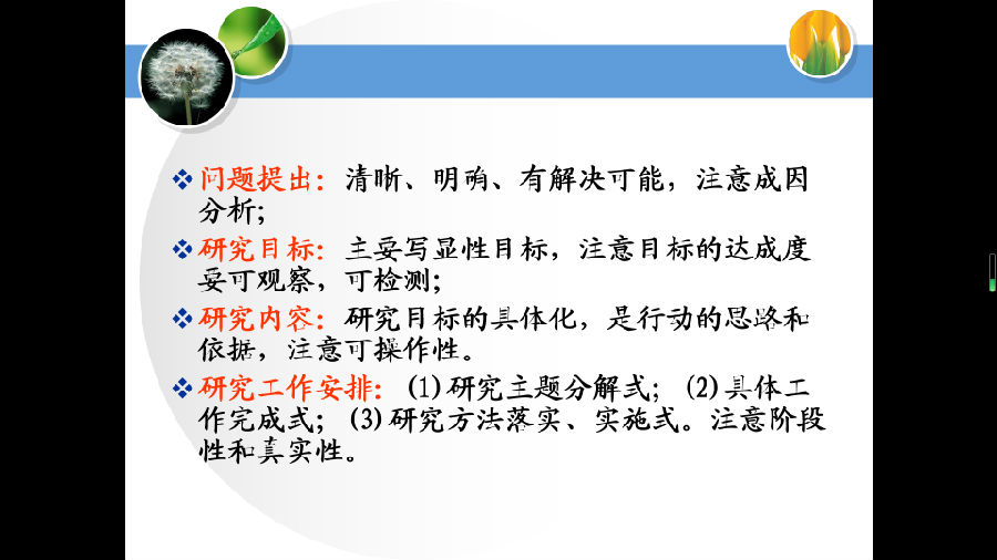 最后由林彩仑做《做真实的有品质的研究——基于“课堂观察”的课题研究》,林老师抓住真问题、真实践、真表达、前沿性和创新性五个维度,突出“真”字,表扬老师的课题能基于课堂观察进行真实研究,这也是一线青年教师最能历练自己科研能力的事儿。林老师对成果的提炼上,提出了自己的看法,要抓住四个关键要素,一是问题提出,要清晰、明确、有解决可能,注意成因分析;二是研究目标,主要写显性目标,注意目标的达成度要可观察,可检测;三是研究内容:研究目标的具体化,是行动的思路和依据,注意可操作性;四是研究工作安排:(1)研究主题分解式;(2)具体工作完成式;(3)研究方法落实、实施式。