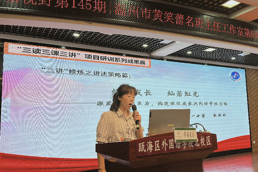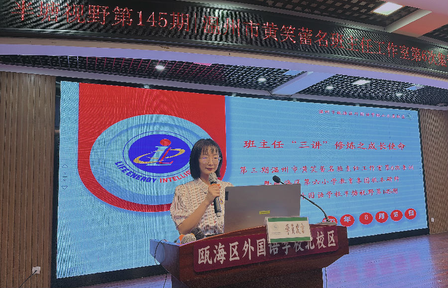 2023年6月16日,我们相聚瓯海区艺术实验小学(瓯海区外国语学校山水居校区),举行第三期温州市黄笑蕾名班主任工作室第6次集训暨瓯海区第六小学教育集团校本研修活动。本次活动特邀浙江省德育专家、温州市名班主任诸葛献跃老师莅临学校讲座指导。参加本次活动的有第三期温州市黄笑蕾名班主任工作室全体学员、瓯海区第六小学教育集团校的班主任代表、瓯海区艺术实验小学全体班主任。本次活动采用钉钉线上同步直播,浙江省黄笑蕾名班主任工作室学员及瓯海区黄笑蕾红色先锋工作室学员参与线上学习。来自瑞安市阁巷小学的金叶老师担任本次的活动主持。