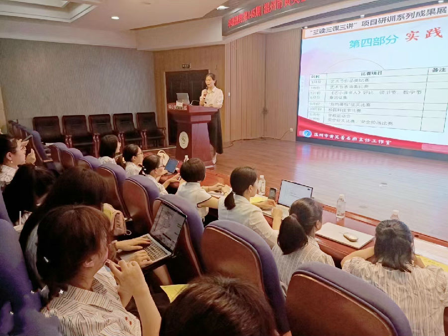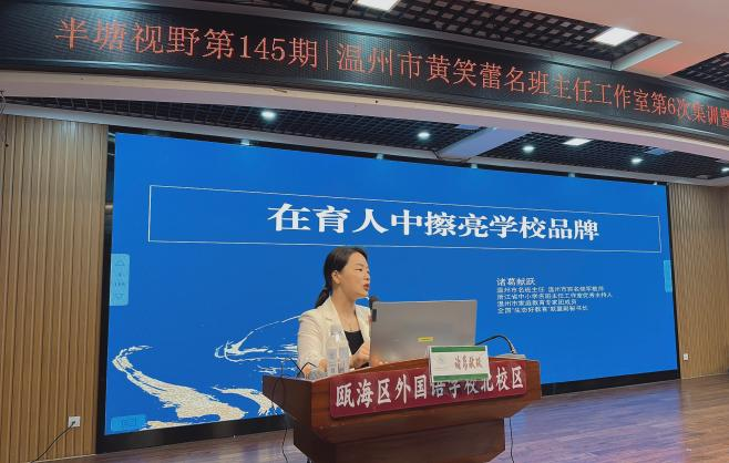 三位学员的精彩分享让全场的老师们受益匪浅。第二项活动由浙江省德育专家温州市名班主任诸葛献跃老师为我们带来《在育人中擦亮学校品牌》专题讲座。