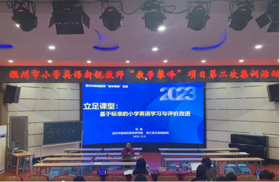 12月8日下午,温州市鹿城区教育研究院,浙江省正高级教师,张璐老师带来了《立足课型:基于标准的小学英语学习与评价改进》的专题讲座。张老师从五个角度阐述了素养导向下的教学。在制定教学目标时,通过育人课堂,达成素养目标;在处理教与学关系时,评价伴随学习,设计真实任务;在组织学习方式时,开展实践型课堂,深度学习;在处理教学内容时,立足单元主题,实现知识统整;同时关注学科育人,在真实情境中解决问题。结合以上的三节课堂实例,关注阅写课、语音课及词汇课的关键问题,为在座的教师细致梳理,指明方向。